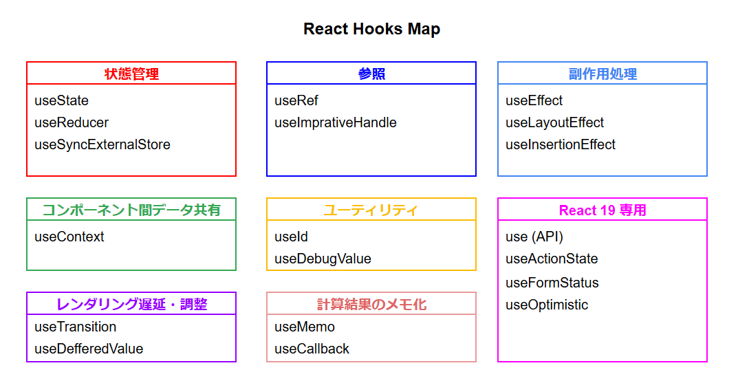 useStateやuseEffectなどは利用する場面が多く慣れている方も多いと思いますが、その他のHooksはどうでしょうか?そもそも名前すら知らないというHooksがたくさんあるかと思います。